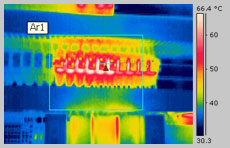 Als dritter wichtiger Schwerpunkt bei der Überprüfung sind die elektrischen Anlagen einer WEA zu nennen. Auch hier lassen sich "unsichtbare" Schwachstellen während des Betriebs der WEA aufspüren. Mittels Elektro-Thermografie können auffällige Wärmeentwicklungen an stromführenden Elementen berührungslos visualisiert werden. Besonderes Augenmerk verdienen erfahrungsgemäß die Verbindungs-und Kontaktbauteile. Der Vorteil der Thermografie liegt auf der Hand: Zur Kontrolle der Bauteile muss die WEA nicht stromlos geschaltet werden – sie bleibt am Netz.